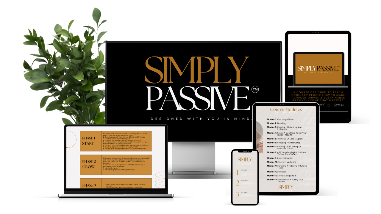 Simply Passive is a simple on-ramp for beginners to learn how to make passive income from home (or anywhere) and is packed with the strategies & tools you need to bring LIFE to your digital marketing business. Built on serving. Built on strategies. Built on integrity.